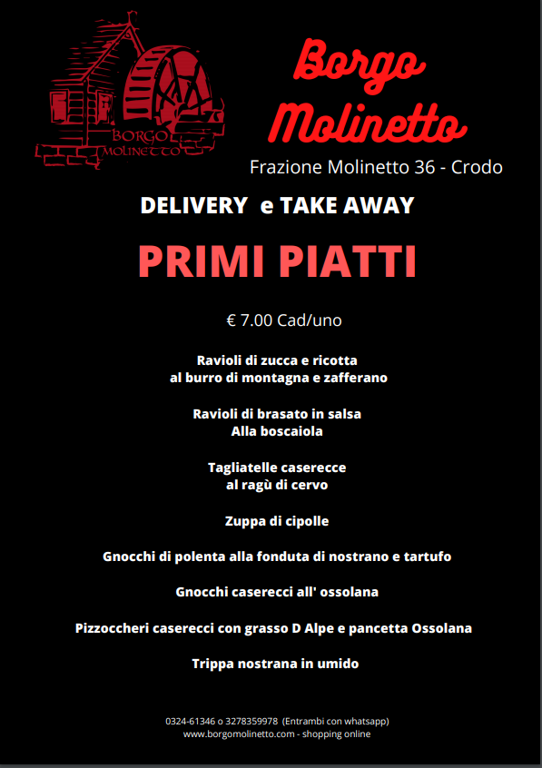 Il nostro menù DEL DELIVERY E TAKE AWAY